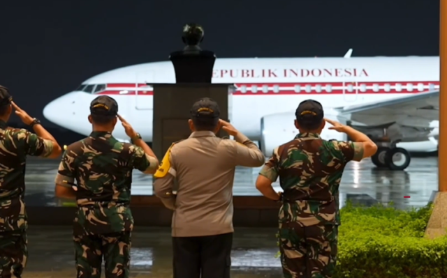 Pesawat kepresidenan PK-GRD yang membawa Presiden Prabowo beserta Menteri Luar Negeri Sugiono dan Sekretaris Kabinet Teddy Indra Wijaya lepas landas pukul 18.50 WIB. Keberangkatan Presiden dilepas oleh Pangdam Jaya Mayjen TNI Rafael Granada Baay, Kapolda Metro Jaya Irjen Pol. Karyoto, Panglima Komando Operasi Udara I Marsma TNI Muzafar, dan Komandan Lanud Halim Perdanakusuma Marsma TNI Erwin Sugiandi.