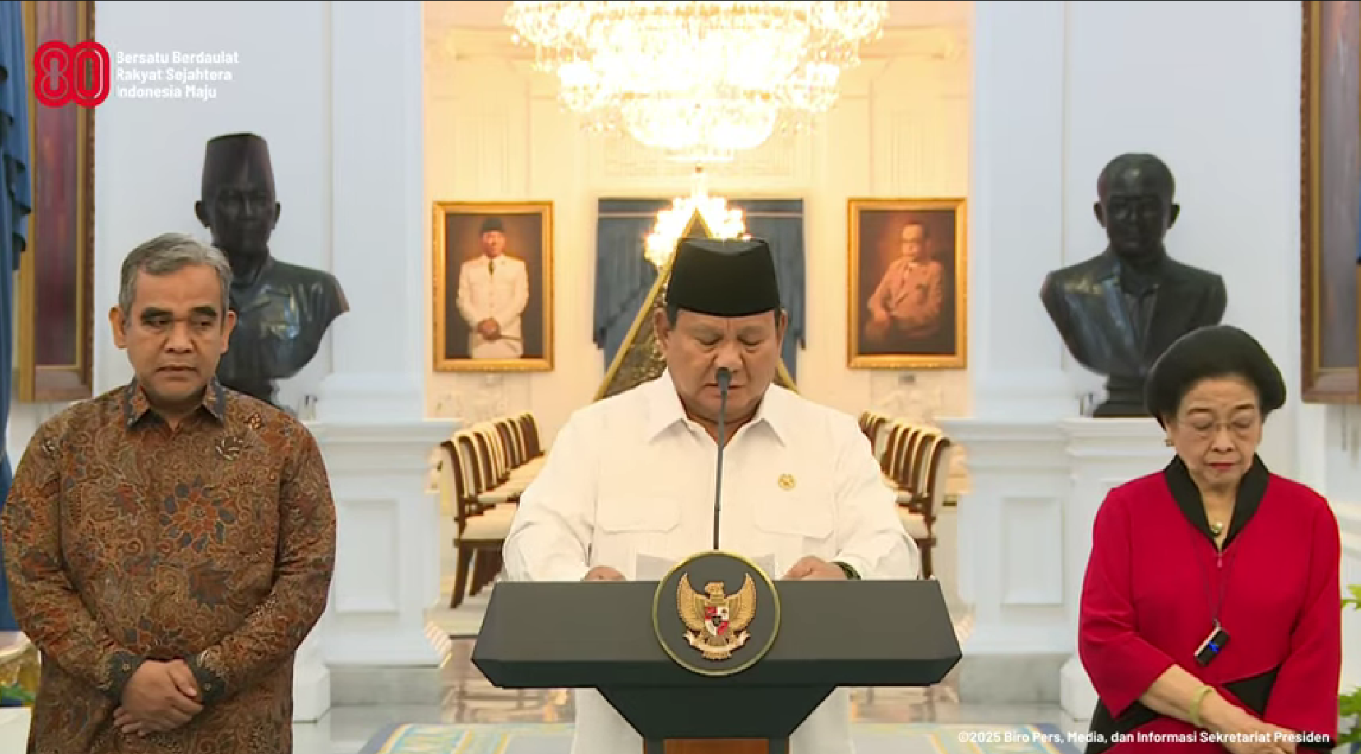 Ia menekankan, sikap tegas itu harus menjadi pengingat agar setiap anggota DPR tidak kehilangan sensitivitas terhadap kepentingan masyarakat. “Pimpinan DPR dan para ketua umum partai sudah menginstruksikan fraksi masing-masing agar wakil rakyat tetap berpihak pada rakyat,” kata Prabowo.