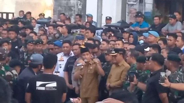 Setelah mendengar penjelasan Wali Kota, peserta aksi menyampaikan catatan kritis. Meski begitu, suasana tetap kondusif, bahkan diwarnai jabat tangan antara peserta aksi dan petugas yang berjaga. (Amri-untuk Indonesia)