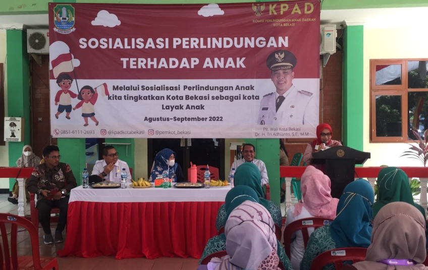 Bertempat di Pendopo Kecamatan Jatiasih, KPAD Kota Bekasi menggelar sosialisasi Perlindungan Terhadap Anak, hadir pada kegiatan tersebut Pelaksana tugas (Plt) Ketua TP PKK Kota Bekasi Wiwiek Hargono Tri Adhianto, Bunda Nyimas Sakuntala Dewan Penasihat KPAD, Sarkeh Dewan Penasihat KPAD, Haris Setiawan Ketua KPAD, Rusham Wakil Ketua KPAD, Hadyan Rahmat Komisioner KPAD, Selma Mariki Komisioner KPAD, Muhammad Reza Pokja Bidang Hukum dan Advokasi KPAD, Camat Jati Asih Ashari beserta jajaran, Ketua TP PKK Jatiasih Ita.