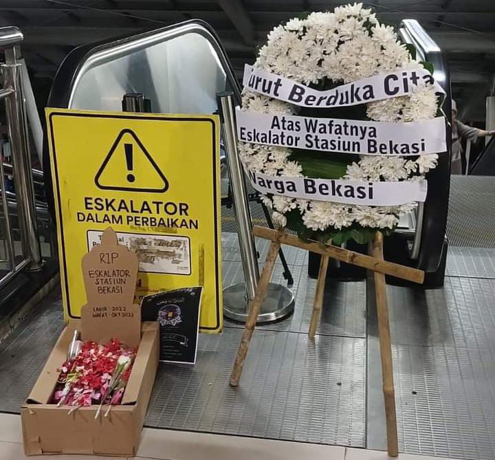 “RIP (rest in peace) escalator Stasiun Bekasi, lahir:2022,wafat:Oktober 2023.”