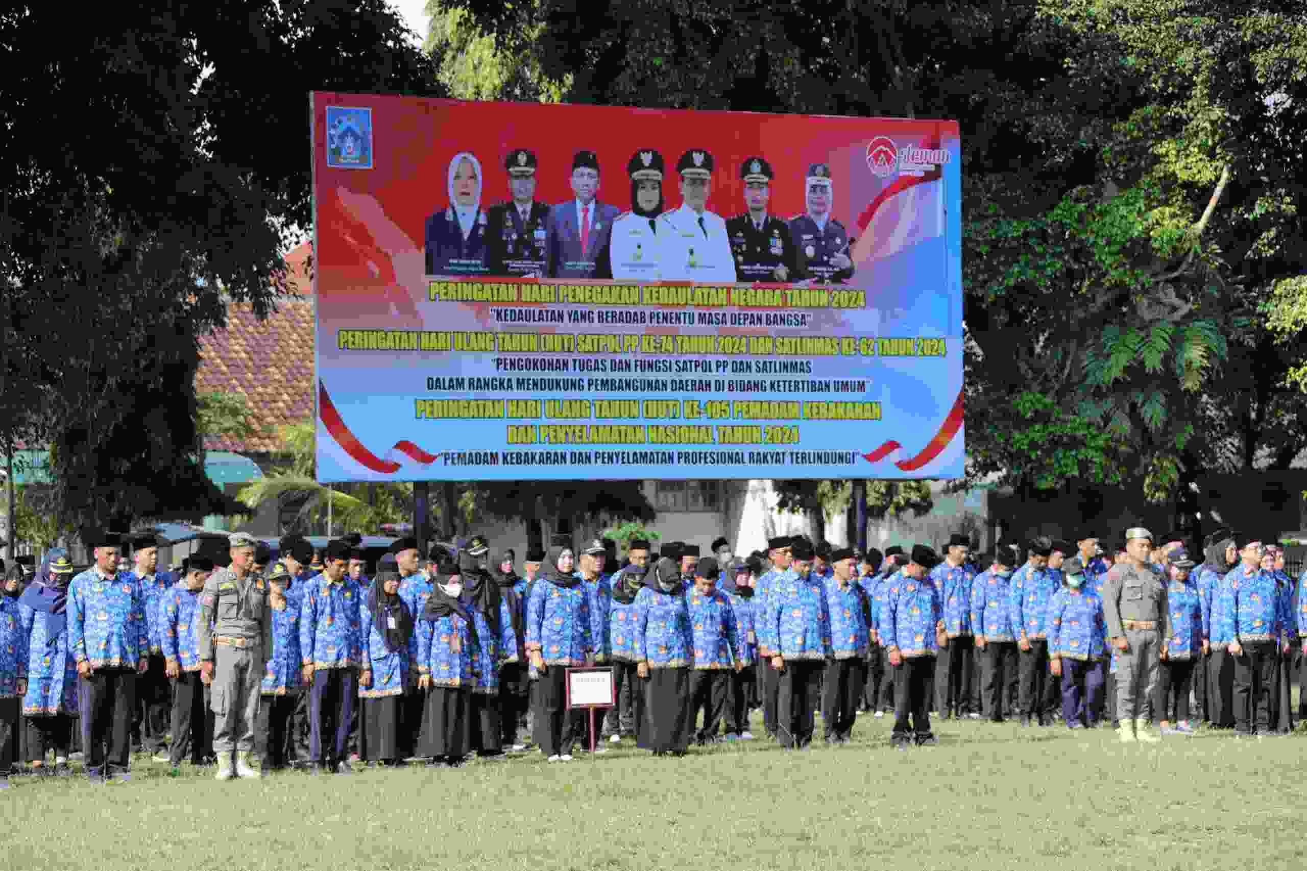 lognews.co.id, Sleman - Pemkab Sleman menggelar upacara bendera dalam rangkap peringatan Hari Penegakan Kedaulatan Negara, Hari Ulang Tahun Satuan Polisi Pamong Praja dan Hari Ulang Tahun Pemadam Kebakaran, bertempat di lapangan Pemda Kabupaten Sleman. Bertindak sebagai inspektur upacara pada kegiatan dihadiri Wakil Bupati Sleman, Danang Maharsa, ini Komandan Kodim (Dandim) 0732/Sleman Letkol Arm Danny A.P Girsang S.Sos.,M.Han. (1/3/2024)