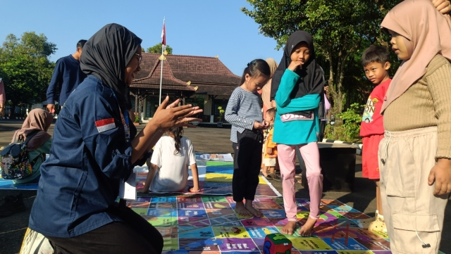 “Yang jelas mainannya komplit bikin senang adik-adik, ada yang main ular tangga, egrang, menggambar, mewarnai pokoknya semuanya senang,” katanya.