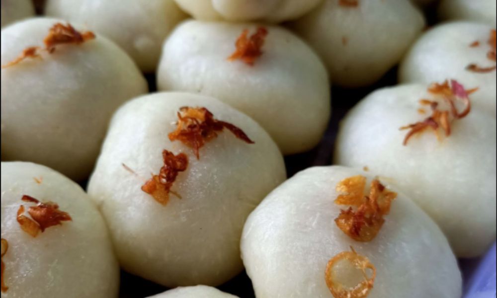 Proses pembuatannya pun masih mempertahankan cara tradisional. Singkong terlebih dahulu dikupas dan dikukus hingga matang, kemudian ditumbuk hingga halus. Adonan tersebut dibentuk bulat dan diisi campuran gula merah serta kacang, lalu disajikan dengan taburan bawang goreng di bagian atasnya.
