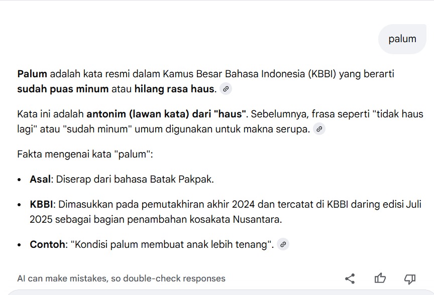 Sementara Palum berasal dari bahasa Batak dan diposisikan sebagai antonim baku dari kata haus. Sementara itu, para pakar bahasa menilai wacana ini wajar sebagai bagian dari dinamika bahasa yang kian berkembang seiring era digital.