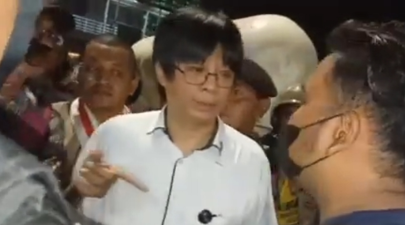 Setelah itu, peserta aksi saling meneriaki aparat kepolisian. Lalu, beberapa perwakilan berjaket almamater dipanggil untuk berdiskusi dengan polisi.