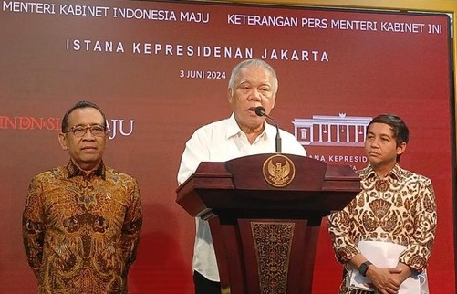 Sebelumnya, Menteri Sekretaris Negara Pratikno mengumumkan keputusan presiden tentang pemberhentian dengan hormat Kepala Otorita IKN, Bambang Susantono sebagai dan Dhony Rahajoe sebagai Wakil Kepala Otorita IKN di Kantor Presiden, sekaligus mengumumkan bahwa Presiden telah menunjuk Menteri Pekerjaan Umum dan Perumahan Rakyat (PUPR) Basuki Hadimuljono diangkat sebagai Plt. Kepala Otorita IKN dan Wakil Menteri ATR Raja Juli Antoni sebagai Plt. Wakil Kepala Otorita IKN sebagai penggantinya. Jakarta, Senin (3/6/2024) (Amr-untuk Indonesia)
