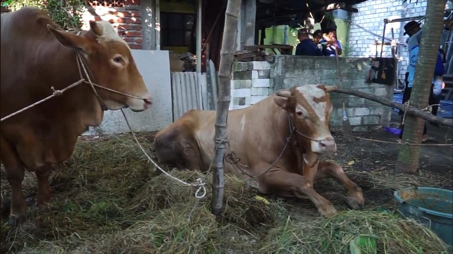 "Hewan disembelih dibantu masyarakat desa, kecamatan menes. Kali ini pemotongan dilaksanakan di hari H, walaupun tahun-tahun sebelumnya disembelih sehari setelah hari H" jelas Ustadz Ali.