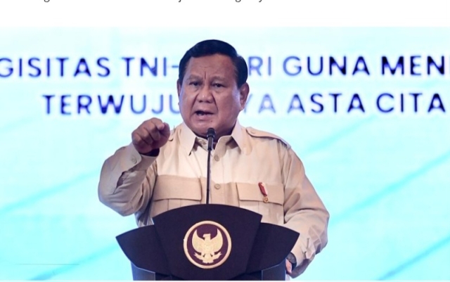 lognews.co.id, Jakarta - Presiden Prabowo Subianto menekankan pentingnya peran Tentara Nasional Indonesia (TNI) dan Kepolisian Negara Republik Indonesia (Polri) dalam menjaga eksistensi dan menegakkan kedaulatan negara. Hal tersebut disampaikan Presiden dalam pengarahannya pada Rapat Pimpinan (Rapim) TNI Polri Tahun 2025 yang digelar di The Tribrata, Jakarta, Kamis, (30/1/2025).