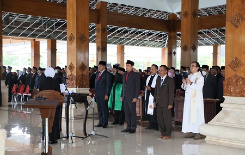 Mak Rini mengucapkan selamat kepada seluruh pejabat yang baru saja dilantik dan diambil sumpahnya. Ia berharap pejabat yang selesai dilantik dapat menjaga integritas, bisa menjadi teladan, Ing Ngarso Sung Tuladha bagi seluruh jajaran. (koko/kontri-untuk Indonesia)