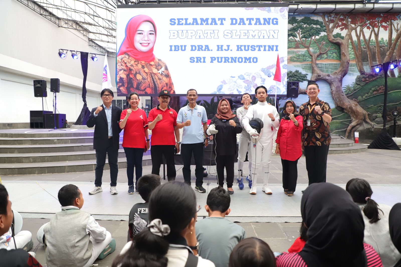 lognews.co.id, Sleman - Bupati Sleman Kustini Sri Purnomo membuka secara resmi penyelenggaraan kejuaraan olahraga Anggar piala Bupati Sleman tahun 2023 yang diselenggakan Ikatan Anggar Seluruh Indonesia (IKASI) Kabupaten Sleman bertempat di Sleman City Hall pada hari Sabtu, (2/12). Pembukaan kejuaraan tersebut ditandai dengan peragakan menusukan pedang anggar oleh Bupati Sleman.