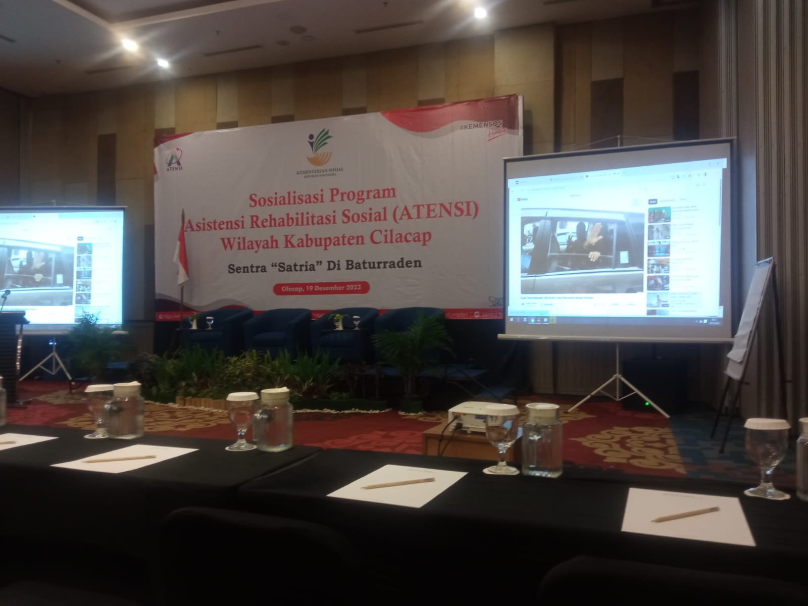 Acara Sosialisasi Program Asisten Rehabilitasi Sosial (ATENSI) Wilayah Kabupaten Cilacap "Sentra Satria" di hotel Aston jl Budi Utomo Baturaden, Cilacap (19/12/2023).