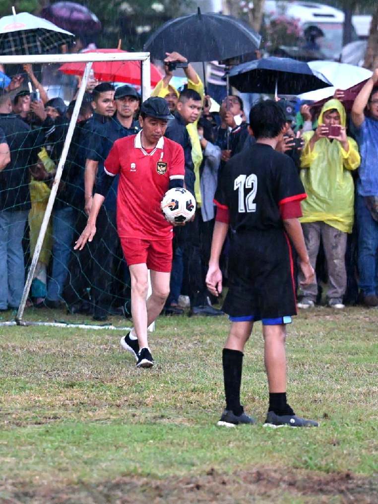 Hujan yang turun tidak menyurutkan para pemain untuk bertanding. Kesempatan bermain bersama Kepala Negara tidak mau dilewatkan begitu saja oleh para pemain.