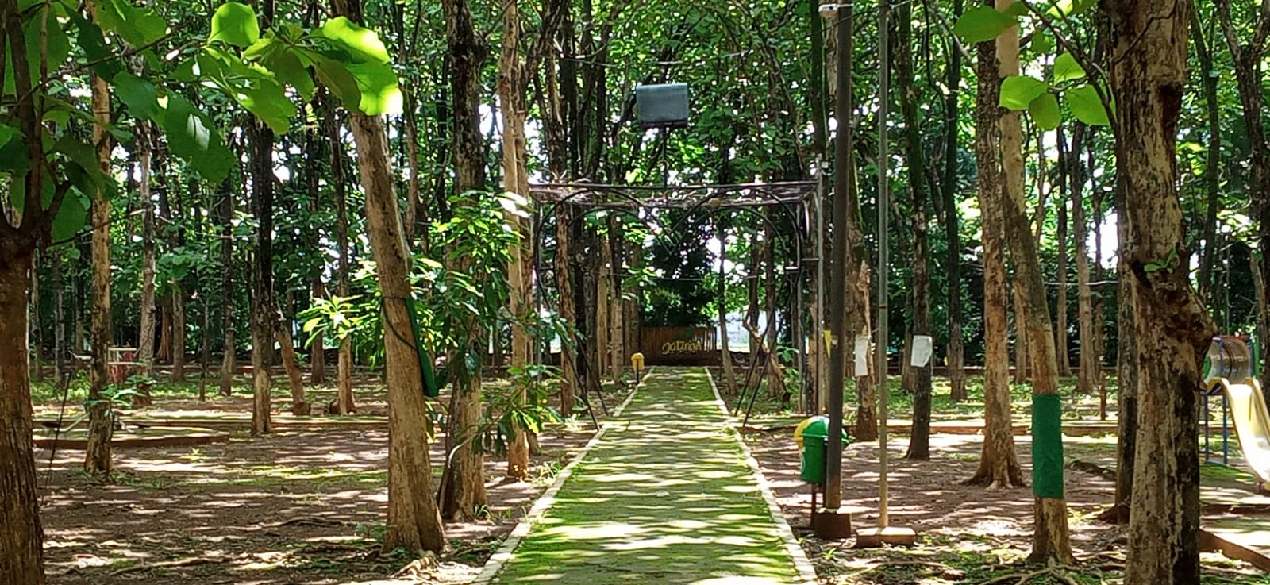 Sesekali nampak burung kutilang hinggap dan meliukan suaranya, ditambah udara sejuk yang tersaring alami oleh dedaunan jati, dan sinar matahari yang tembus dari selah selah pohon menjaga keteduhan area hutan buatan ini namun tetap kering sehingga tetap sehat dan bersih.