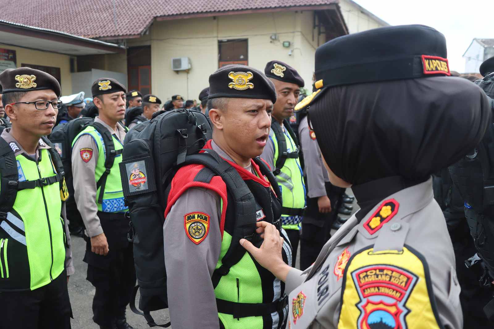 Usai apel, Kapolres AKBP Herlina yang didampingi pejabat utama Polres Magelang Kota melakukan pengecekan sikap tampang personel. dilanjutkan kelengkapan personel pengamanan TPS. Satu persatu tas yang akan dibawa dalam pengamanan TPS diperiksa. Isi tas antara lain pakaian dinas, tongkat, borgol, senter, peluit, mantel, peralatan ibadah dan perlengkapan mandi. AS