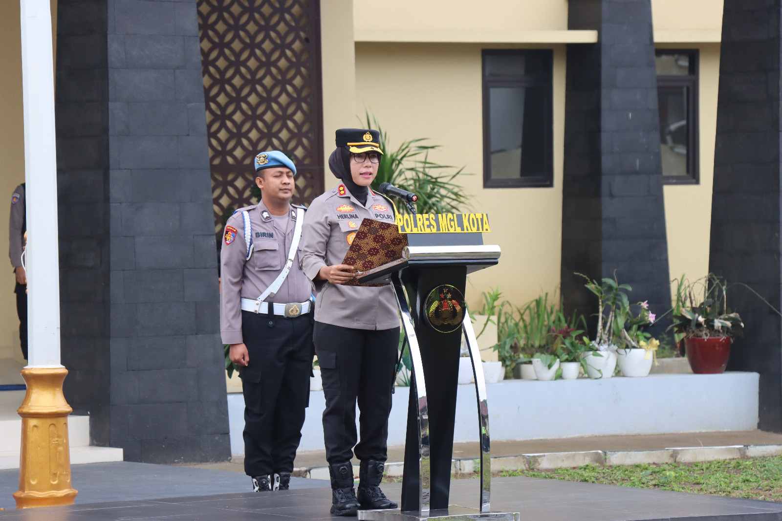 Apel dipimpin Kapolres AKBP Herlina, S.I.K., M.H. yang diikuti oleh seluruh personel yang terlibat dalam pengamanan Tempat Pemungutan Suara (TPS) dan Satuan Tugas (Satgas) Operasi Mantap Brata Candi 2024 Polres Magelang Kota dalam pengamanan Pemilu 2024.