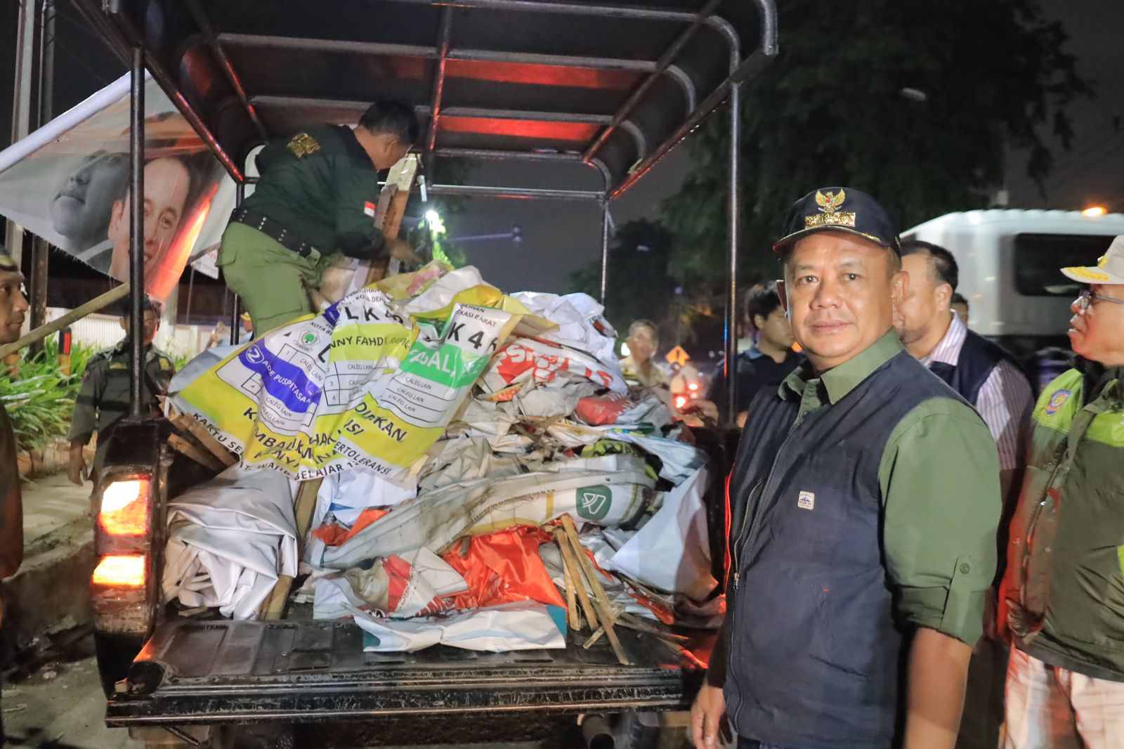 lognews.co.id, Bekasi - Memasuki Masa Tenang Kampanye Pemilu 2024, Alat Peraga Kampanye (APK) harus ditertibkan, dan mulai Minggu, (11/02) pada 00.00 dini hari, para personil penertiban APK sudah mulai diterjunkan di setiap Kecamatan.