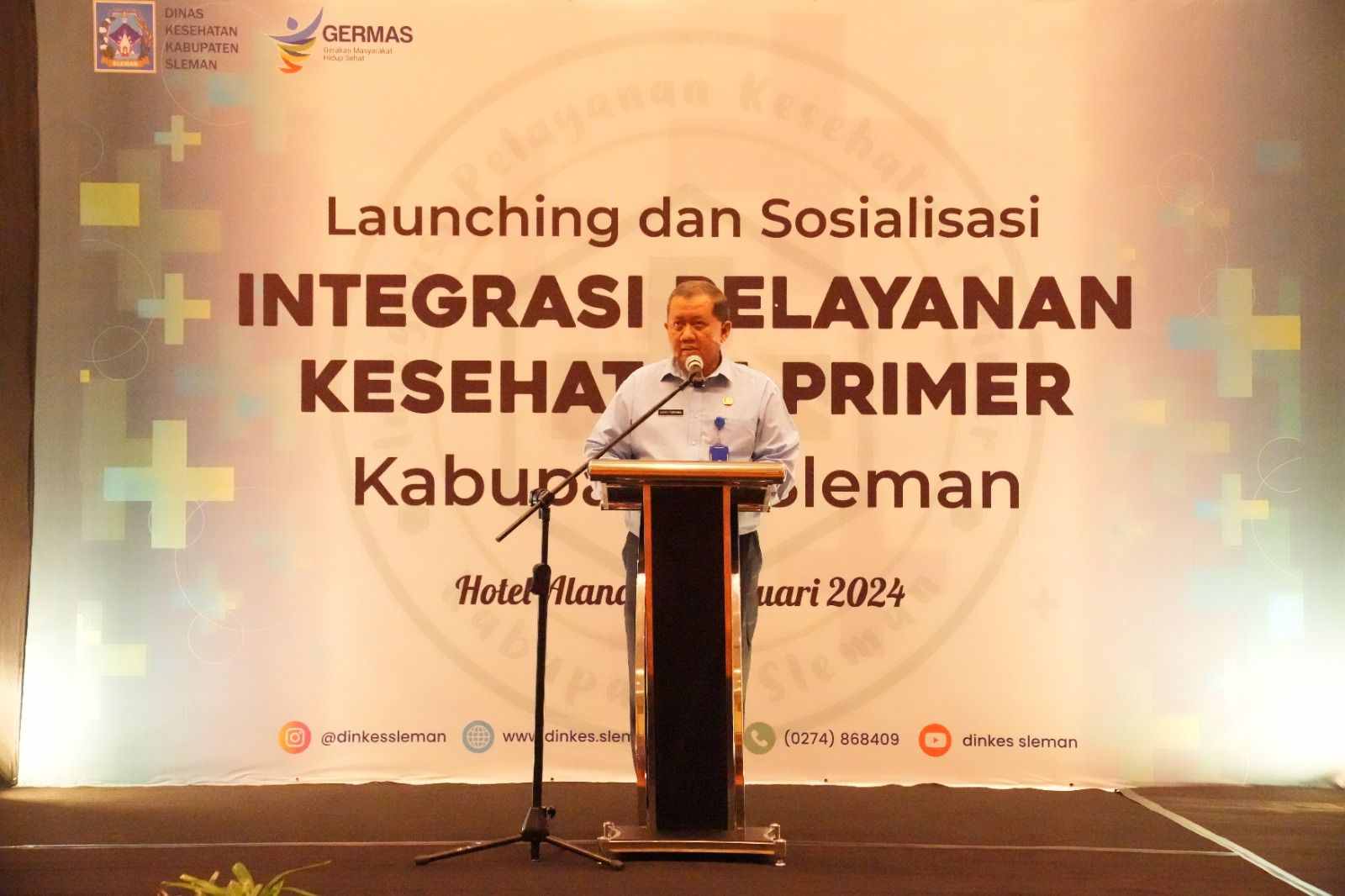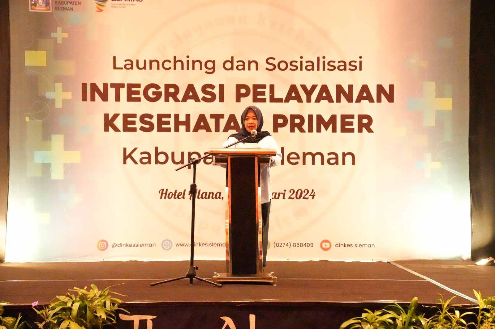 lognews.co.id, Sleman - Sebagai upaya percepatan implementasi Integrasi Pelayanan Kesehatan Primer, Dinas Kesehatan Sleman menyelenggarakan kegiatan Launching dan Sosialisasi Integrasi Pelayanan Kesehatan Primer, Selasa (13/2). Bertempat di The Alana Yogyakarta Hotel & Convention Center, prosesi launching dilakukan secara simbolis oleh Bupati Sleman, Kustini Sri Purnomo, dengan memasangkan pin Integrasi Pelayanan Kesehatan Primer kepada 25 Kepala Puskesmas.