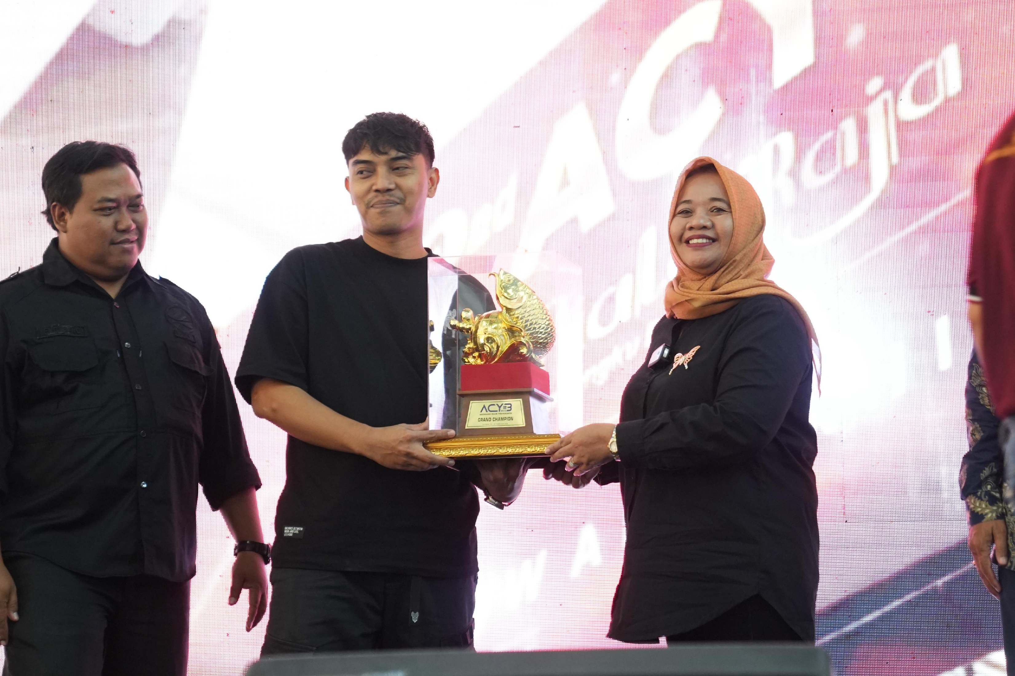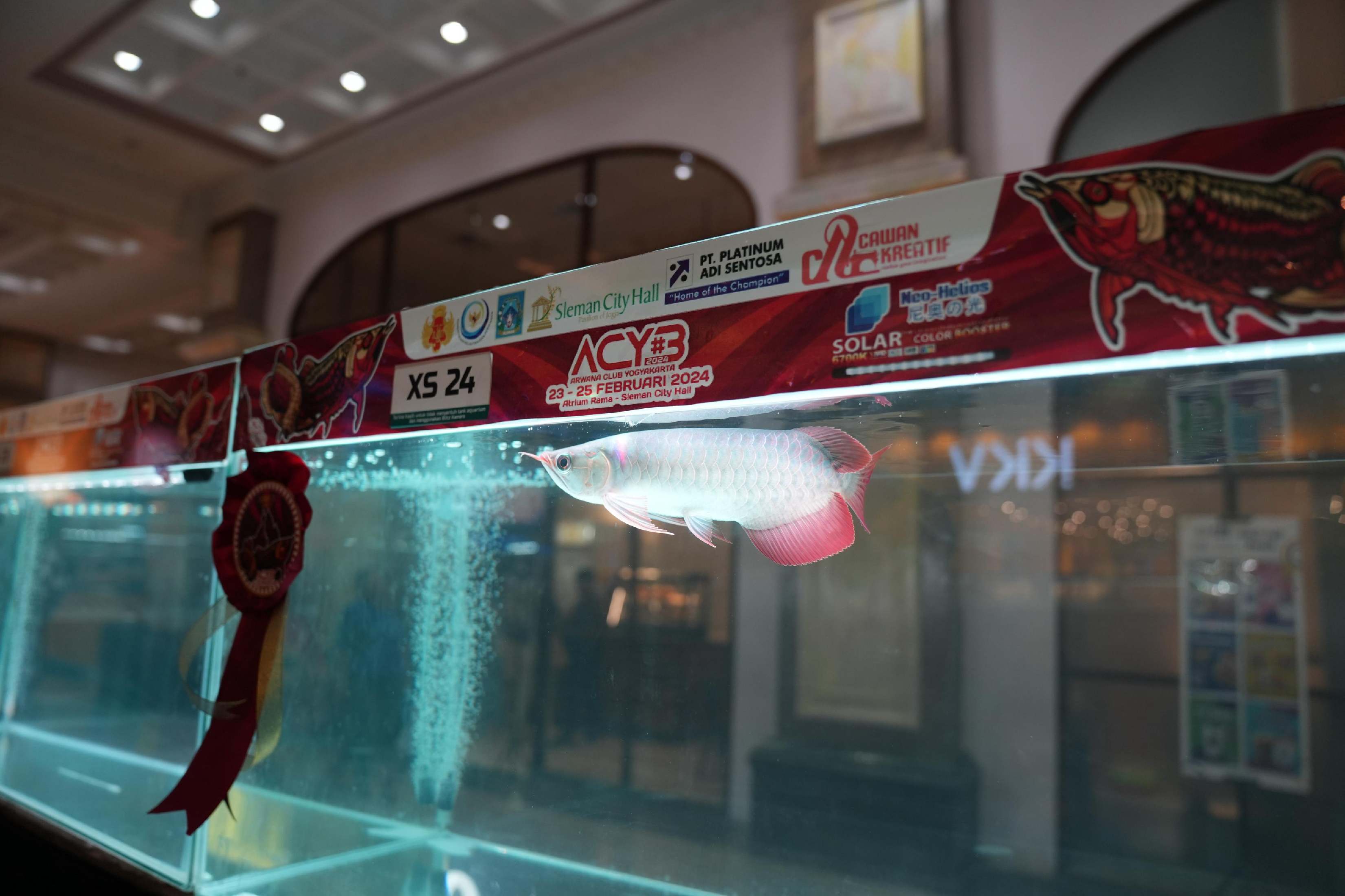 lognews.co.id, Sleman - Bupati Sleman, Kustini Sri Purnomo menghadiri penyelenggaraan Kontes Arwana yang diinisasi Arwana Club Yogyakarta #3 bekerjasama dengan Dinas Pertanian, Pangan dan Perikanan Kabupaten Sleman, pada Minggu (25/2) di Atrium Rama Sleman City Hall. Kustini menutup ACY #3 sekaligus menyerahkan trofi utama Grand Champion kepada pemenang.