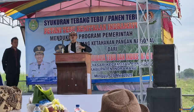Selanjutnya Ia menerangkan Indramayu disamping sebagai lumbung padi nasional juga mempunyai potensi kualitas tebu yang termasuk dalam 9 makanan pokok sebagai bahan baku gula, oleh karena itu, panen raya ini menjadi langkah penting menuju cita-cita besar mewujudkan swasembada gula nasional dan ekonomi kerakyatan berbasis pertanian kewilayahan sesuai visi Indramayu Reang.