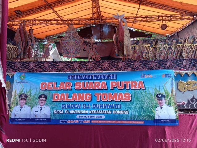 Suasana kebersamaan terlihat dalam acara adat Mapag Sri di Desa Plawangan, Kecamatan Bongas, dengan menampilkan gelar suara putra, dalang Tomas, dan sinden HJ. Duniawati, kehadiran warga dan perangkat desa menunjukkan antusiasme terhadap acara adat ini.