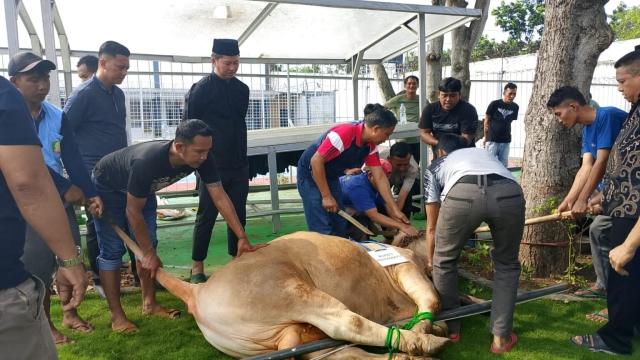 Penyembelihan dilakukan secara bertahap, dengan tahap pertama untuk kebutuhan pembinaan dan petugas, dan tahap kedua untuk distribusi daging kepada masyarakat sekitar.