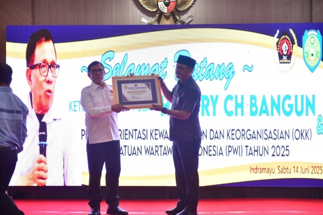 Keseriusannya itu mendapatkan apresiasi dari Ketua Persatuan Wartawan Indonesia (PWI) Pusat yang memberikan penghargaan kepada Bupati dan Wakil Bupati Indramayu sebagai Tokoh Penjaga Ketahanan Pangan Nasional tahun 2025, Sabtu (14/6/25) di Ruang Ki Tinggil Setda Indramayu.