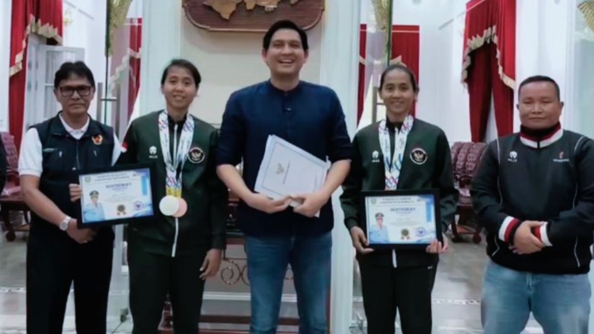 lognews.co.id, Indramayu - Bupati Indramayu Lucky Hakim sambut atlet sepak takraw kembar Lena dan Leni di Pendopo Kabupaten, Sabtu (10/1/2026) pukul 13.00 WIB. Si kembar asal Desa Karangkerta, Kecamatan Tukdana, baru raih medali perak nomor mix dan dua perunggu regu serta tim regu wakili Indonesia di SEA Games Thailand 2025. Sehari sebelumnya, Presiden Prabowo Subianto beri penghargaan plus bonus Rp110,25 juta per orang di Istana Negara, Kamis (8/1/2026).