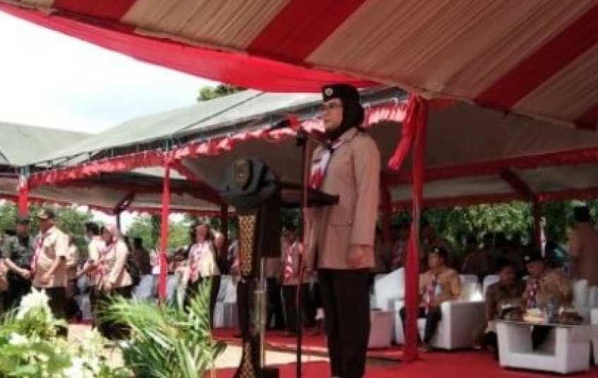 Bupati Indramayu, Nina Agustina selaku Ketua Majelis Pembimbing Cabang (Mabicab) Gerakan Pramuka Kabupaten Indramayu bertindak sebagai inspektur upacara Peringatan HUT ke-61 Pramuka Tingkat Kabupaten Indramayu.