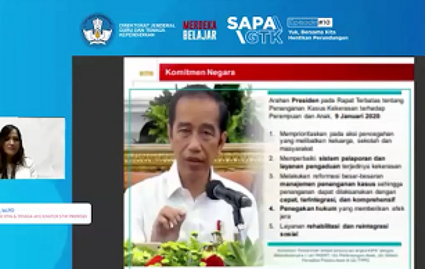 “Kita cukup beruntung, untuk tiga dosa besar ini, salah satunya kekerasan seksual, kita sudah punya payung hukum yang sangat luar biasa karena tidak hanya dibahas penanganan kasus itu sendiri tapi juga ada pencegahan termasuk psikososial, trauma healing, termasuk mitigasi,” kata Erlinda yang juga menjadi narasumber dalam webinar Sapa GTK ini.