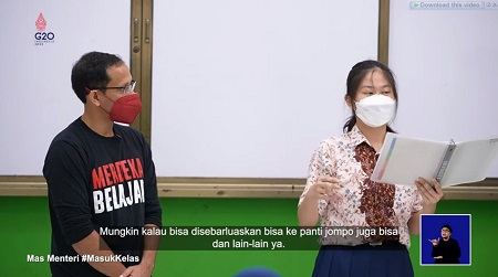 Menteri Nadiem megutarakan semangat gotong royong dan kemampuan berkolaborasi dari semua pemangku kepentingan pendidikan menjadi prinsip utama dalam melaksanakan PTM hingga 100 persen. Kepada Desta dan para siswa, Menteri Nadiem menuturkan semangat gotong royong ini adalah salah satu nilai terpenting dalam dalam mewujudkan profil Pelajar Pancasila.