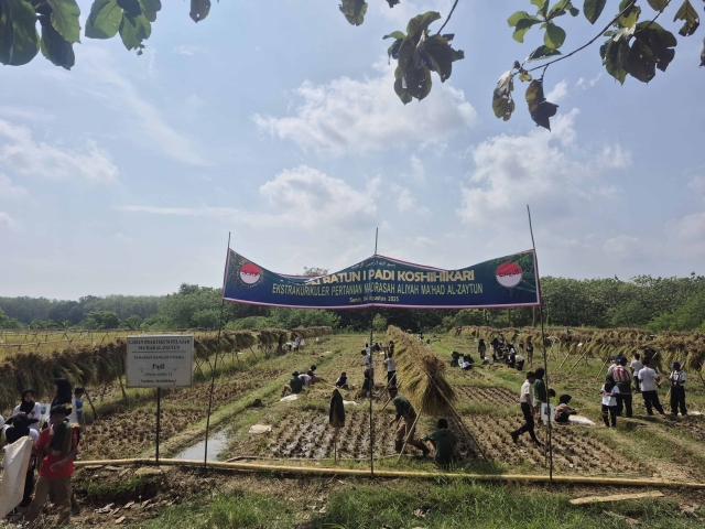 lognews.co.id,Indonesia – Semangat belajar dan bekerja keras tampak nyata di tengah hamparan sawah di pusat pendidikan berasrama Ma’had Al - Zaytun. Para santri dari ekstrakurikuler pertanian baru saja memanen padi unggul varietas jepun, koshihikari.