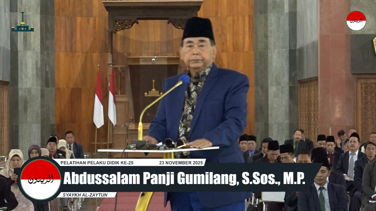 lognews.co.id, Indonesia - Pelatihan Pelaku Didik Al Zaytun memasuki sesi ke-25. Ahad, 23 November 2025, dengan menghadirkan, seorang peneliti sekaligus praktisi pertanian ahli bioteknologi, Prof. Dr. Ir. Ali Zum Mashar, M. Si. Setelah pemaparan narasumber yang mengungkap ancaman pangan dan solusi bioteknologi, Syaykh Al Zaytun memberikan respons mendalam dalam sesi penggulungan dan simpulan kuliah umum, yang menitikberatkan pada kesadaran (sadar), konsistensi, dan misi pendidikan Al-Zaytun.