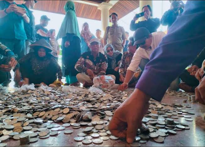 lognews.co.id, Indramayu – Suasana di Pendopo Kabupaten Indramayu mendadak riuh pada Senin (6/4/2026) sore saat sejumlah petambak yang tergabung dalam Koalisi Masyarakat Pesisir Indramayu (KOMPI) datang membawa tiga karung berisi uang koin. Aksi unik ini dilakukan sebagai bentuk pertanggungjawaban moral warga atas kerusakan fasilitas umum yang terjadi saat unjuk rasa menolak Proyek Strategis Nasional (PSN) Revitalisasi Tambak Pantura pada Kamis (2/4) lalu. Massa menumpahkan uang receh tersebut di teras pendopo sebagai simbol iktikad baik untuk mengganti rugi kerusakan Alun-alun dan Tugu 0 Kilometer.