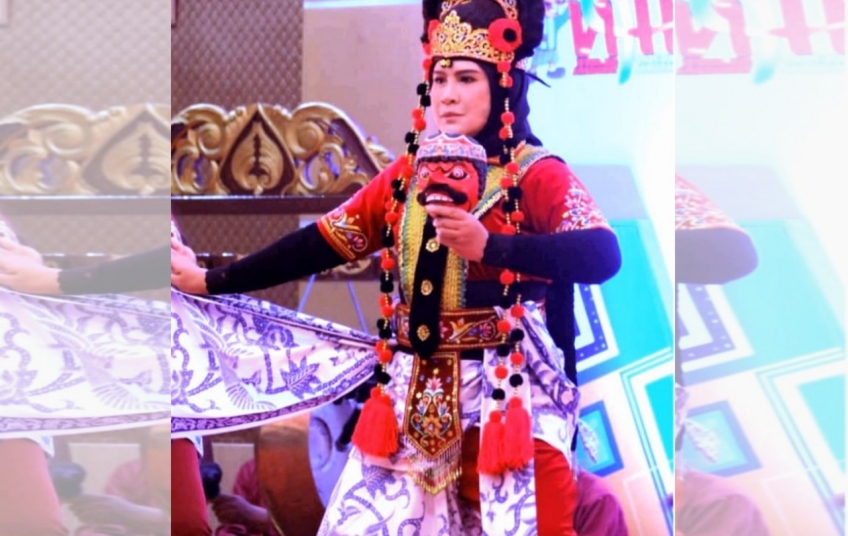 Sebelum bertemu Gubernur Ali Mazi, Nina tampil sempurna menari topeng Kelana Gandrung di acara Gala Dinner Hari Pers Nasional 2022.