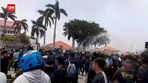 Beberapa dari pengunjuk rasa ada yang masuk ke dalam gedung tersebut, sedangkan yang lainnya masih berada di luar. Terlihat beberapa orang juga sudah diamankan oleh pihak kepolisian.