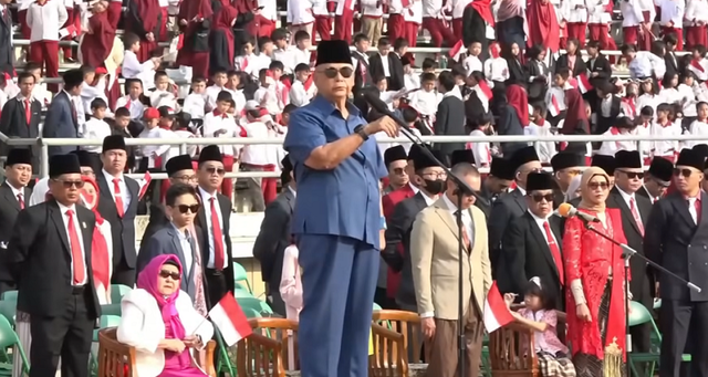 Bertindak sebagai pembina upacara, Syaykh Panji Gumilang mencontohkan dan mengomandoi para hadirin mulai dari santri PAUD, santri kelas 1 hingga 12, Mahasiswa IAI Al Aziz, warga belajar PKBM hingga seluruh eksponen, walisantri, dan semua civitas Ma'had Al-Zaytun, untuk memegang bendera sambil memekikan kata “merdeka” sembari megangkat tangan atau bendera setinggi tinggnya.