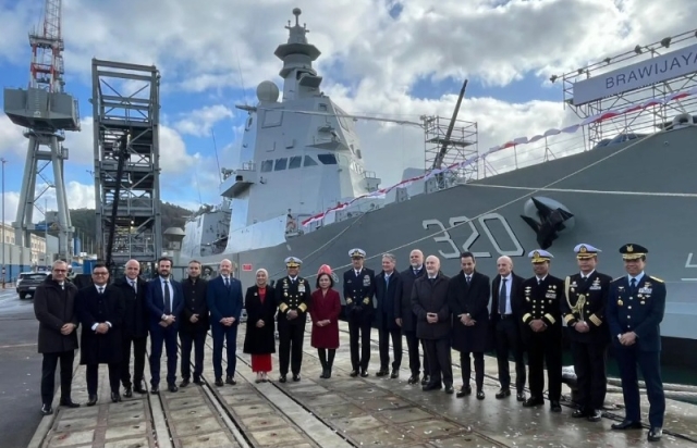 lognews.co.id, Roma - Kepala Staf Angkatan Laut (KSAL), Laksamana TNI Dr. Muhammad Ali didampingi Ketua Umum Jalasenastri Ny. Fera Muhammad Ali memimpin upacara pemberian nama secara simbolis (Shipnaming) KRI Brawijaya-320 dan KRI Prabu Siliwangi-321 di galangan kapal Fincantieri Muggiano, Rabu (29/1/2025).