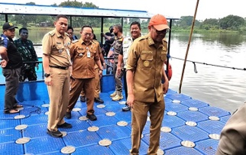 Imam Budi Hartono, Wakil Wali Kota Depok didampingi Camat Sawangan, Anwar Nasihin dan Camat Bojongsari, Rijal Farhan, mengunjungi meninjau lokasi Alun Alun Sabojong di kawasan Situ 7 Muara.
