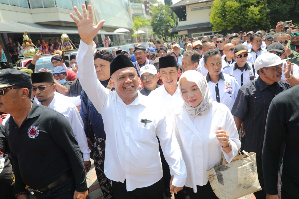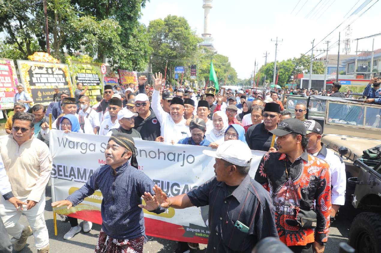 Paguyuban Jeep merapi berjumlah 100 mobil Jeep, serta masyarakat dari 17 Kapanewon / Kecamatan yang ada di Kabupaten Sleman, melakukan iring iringan dilanjutkan dengan memberikan berupa gunungan yang berisi bermacam - macam hasi pertanian sebagai bentuk penghormatan kepada pemikiran dan pengabdiannya kepada seluruh masyarakat Sleman.
