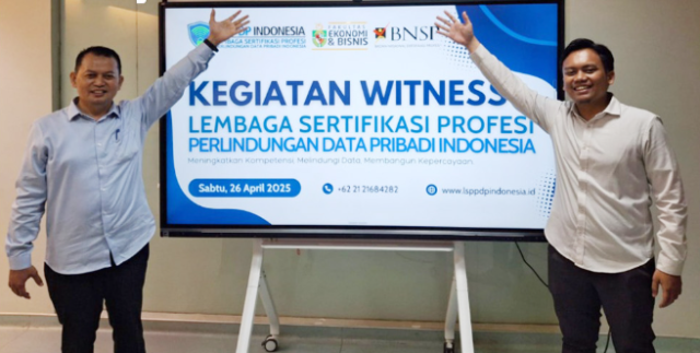 Kegiatan ini bertujuan menilai kompetensi profesional di bidang perlindungan data pribadi dan disaksikan oleh tim asesor resmi BNSP, termasuk Suhadi (Lead Asesor), Zigit Mahaputra (Asesor Anggota), dan Prof Amilin (Asesor Observer sekaligus Komisioner BNSP).