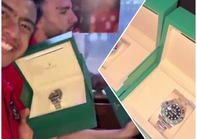 Setelah acara jamuan selesai, setiap personel Timnas Indonesia membawa pulang bingkisan dari Presiden Prabowo. Jay Idzes mengaku belum membuka hadiah tersebut saat ditanya wartawan. Namun, unggahan Instagram Story pemain Timnas, Justin Hubner, mengungkapkan isi bingkisan tersebut berupa jam tangan mewah merek Rolex.