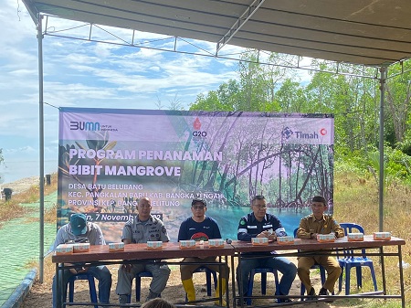 Turut serta dalam giat penanaman, Bupati Bangka Tengah Algafry Rahman, S.T., Pejabat PT. Timah, Mahasiswa Universitas Bangka Belitung, Siswa dari SMPN 2 Pangkalan Baru dan Pelajar dari SD Batu Belubang. (Amr-untuk Indonesia)