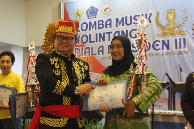 lognews.co.id, Amurang - Tim Kolintang Gistara Jayashree Dharma Wanita Persatuan (DWP) Bakamla RI berhasil meraih Juara 1 pada Lomba Musik Kolintang Piala Presiden III, yang berlangsung di Amurang, Minahasa Selatan, Sabtu (14/12/2024).