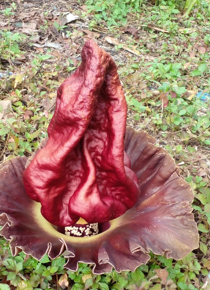 “kalo dikampung sini, orang orang ngenalnya bukan bunga, orang gak enak baunya, tapi kalau tanamannya itu ada buahnya, namanya suweg bisa dimasak, dikukus, rasanya ya enak, kalo yang suka bilang gurih, biasanya dicampur sama kelapa” ujar Suharni.