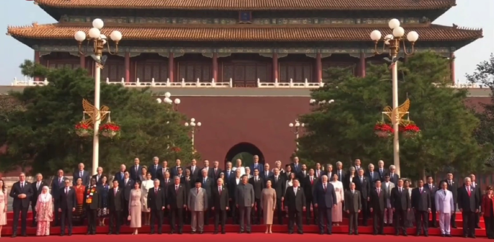 Dalam sesi foto bersama, posisi Prabowo yang berdiri di sebelah kanan Presiden Putin memperlihatkan posisi penting dan terhormat Indonesia di forum internasional. Setelah itu, Prabowo bersama para pemimpin dunia lainnya bergerak menuju Tian’anmen Rostrum. Dari sana, Prabowo duduk berdampingan dengan Putin dan Premier Li Qiang untuk menyaksikan parade militer dan perayaan lainnya.