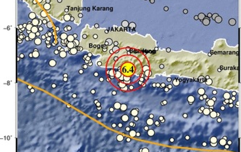 Dengan kekuatan gempa 6.4 SR pukul 16:49 WIB dengan Lintang 7.51 LS, Bujur 107.52 BT dikedalaman 118 Km.