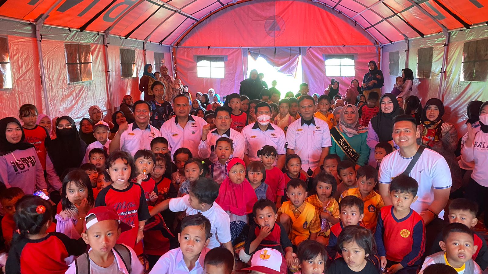 Terlihat keceriaan dari anak anak menyambut Kegiatan refresh healing yang dilakukan di tenda darurat, di TK Tunas Kancana Ciputri Kp Cijedil Desa Ciputri Kab Cianjur.