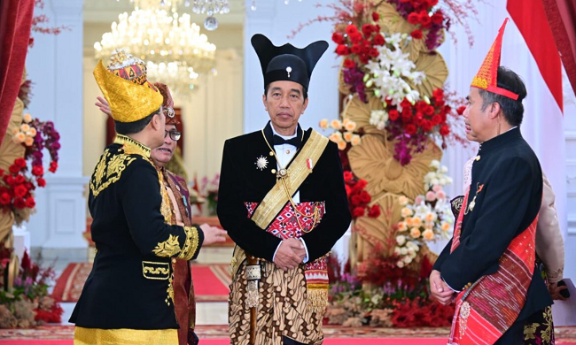Pada kesempatan kali ini, Ibu Iriana Joko Widodo tampil mengenakan pakaian adat khas Bali. Sementara itu, Wakil Presiden Ma’ruf Amin beserta Ibu Wury Ma’ruf Amin tampak mengenakan pakaian adat baju koto gadang khas Sumatra Barat.
