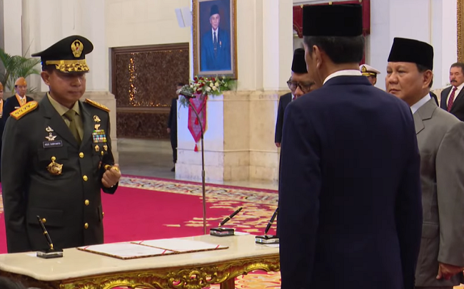 lognews.co.id, Jakarta - Presiden RI Joko Widodo (Jokowi) melantik Jenderal TNI Agus Subiyanto sebagai Panglima TNI, bertempat di Istana Negara, Jakarta, Rabu (22/11/2023).